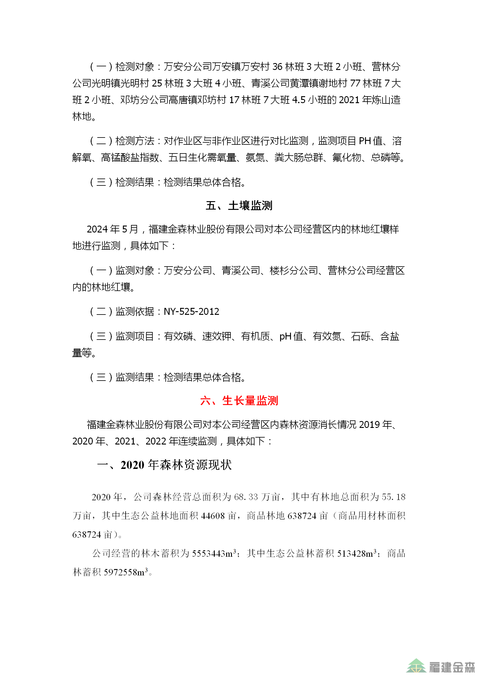 金森公司2024年監測結果